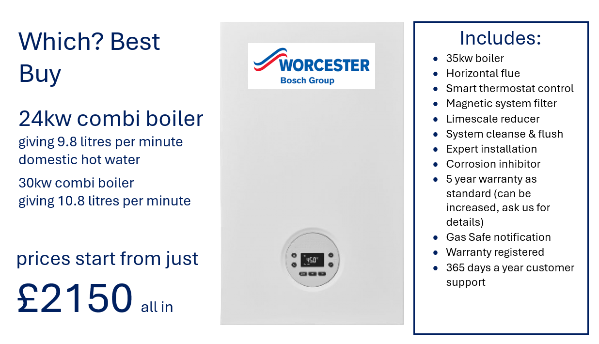 Boiler and installation guaranteed for 5 years (minimum, subject to yearly servicing)